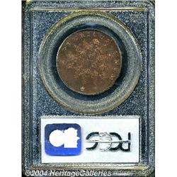 <B>(1792-94)<TOKEN> Kentucky Token, Plain Edge MS64 Red PCGS.</B></I> Plain Edge. Breen-1155. Lustrous and well defined with minor contact marks. The plain edge is more common overall than the LANCASTER edge, but in mint red the plain edge is many times rarer. Extremely rare in this lustrous condition with two MS64 Red coins the only pieces to have been certified Red. The reverse pyramid of stars, or blazing suns, has Masonic symbolism and these pieces are sometimes called the Starry Pyramid halfpence. The original thirteen stars, or suns, form the Masonic Unfinished Pyramid. The top star is marked K, for Kentucky, and the right star on the upper second row is marked V, for Virginia. The remaining stars are each marked for one of the other thirteen states.<BR> These pieces were engraved in England by John Gregory Hancock and struck by Westwood's mint in Birmingham. It is not known who ordered these pieces from the Westwood mint, but we do know that they were readily accepted and circulated widely, even when the fledgling Philadelphia mint coppers remained relatively unpopular. Listed on page 61 of the 2005 <I>Guide Book.</B></I> <BR><BR><B>Important notice:</B> Heritage usually auctions material at the rate of 200-250 lots per hour. On some occasions eBay Live bid software or the Internet may not be able to keep up with the pace of the auction. We recommend placing a realistic absentee bid now as insurance to avoid disappointment. Occasionally the auctioneer may eliminate or reject an eBay Live bid, and the auctioneer may also reopen a lot after the close of the eBay live bidding (usually because we missed an audience bid), and may reject your bid even if it shows you as the winning bidder. By bidding via eBay Live, you agree that Heritage may award the lot to another bidder at its sole discretion under the circumstances described above or any other reasonable circumstances. Since eBay bids are not shown to us until we open the lot on the floor, we treat those bids just like floor bids. In most cases the floor responds before the eBay bid is presented to us, due to Internet lag time, so for consistency we have made it a policy that floor bids are always considered first over tie eBay live bids. Also please note that all Heritage lots purchased through eBay Live carry a 20% Buyer's Premium. Please make sure you read the Terms and Conditions before you bid.