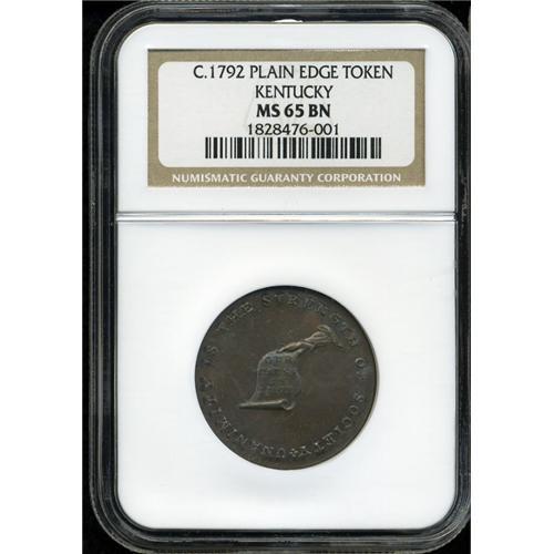 (1792-94) TOKEN Kentucky Token, Plain Edge MS65 Brown