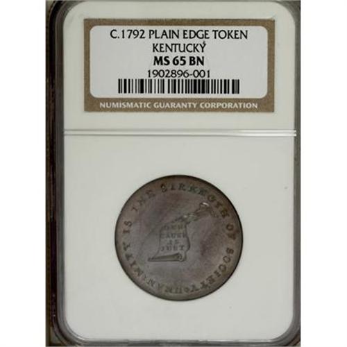 (1792-94) TOKEN Kentucky Token, Plain Edge MS65