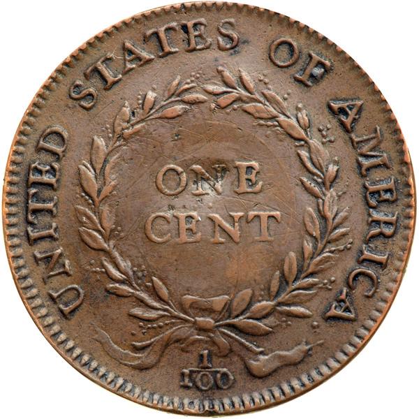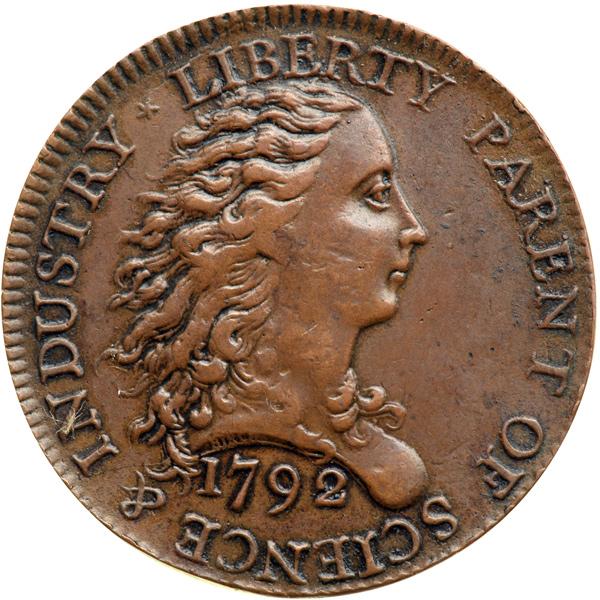 1792 Birch Cent Electrotype Copy. EF-40. Very attractive glossy light chocolate brown. The model or host coin graded EF40. The only defects are some faint scratches inside the wreath and a depression on the N in ONE. A well-executed copy of the famous and extremely rare early pattern cent engraved by Robert Birch (known as the Birch Cent) as described on page 85 of the "Redbook."