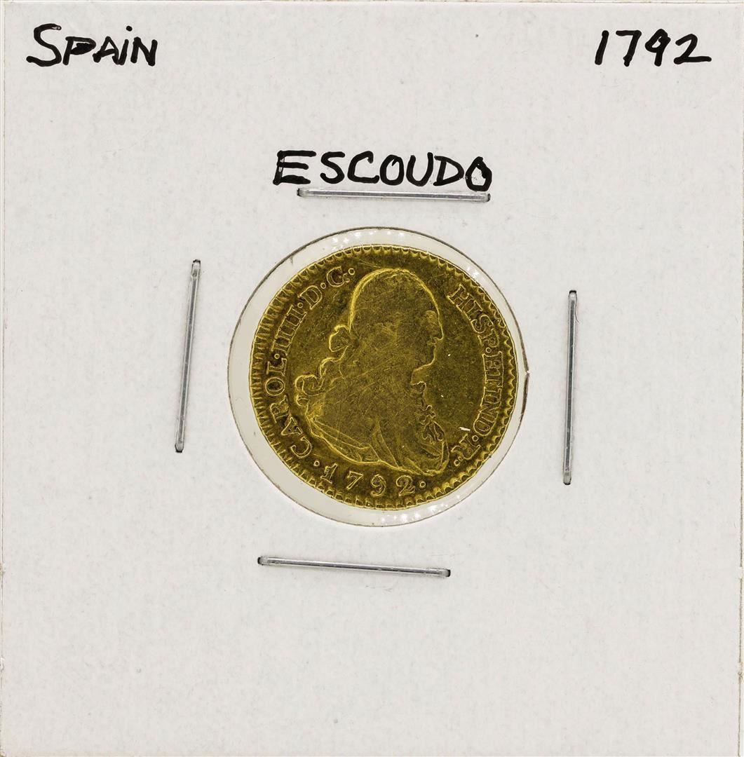 One 1792 Charles IV Spanish Escudo Gold Coin.