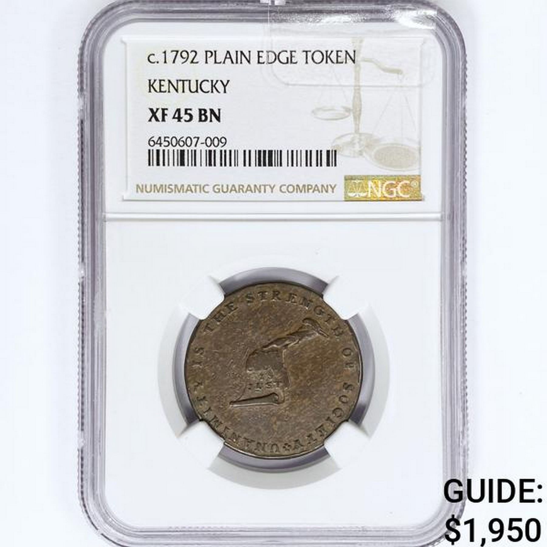 1792 Kentucky Token NGC XF45 BN Plain Edge