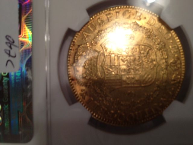 1792 NRJJ COLUMBIA SPANISH GOLD 8 ESCUDO NGC AU55