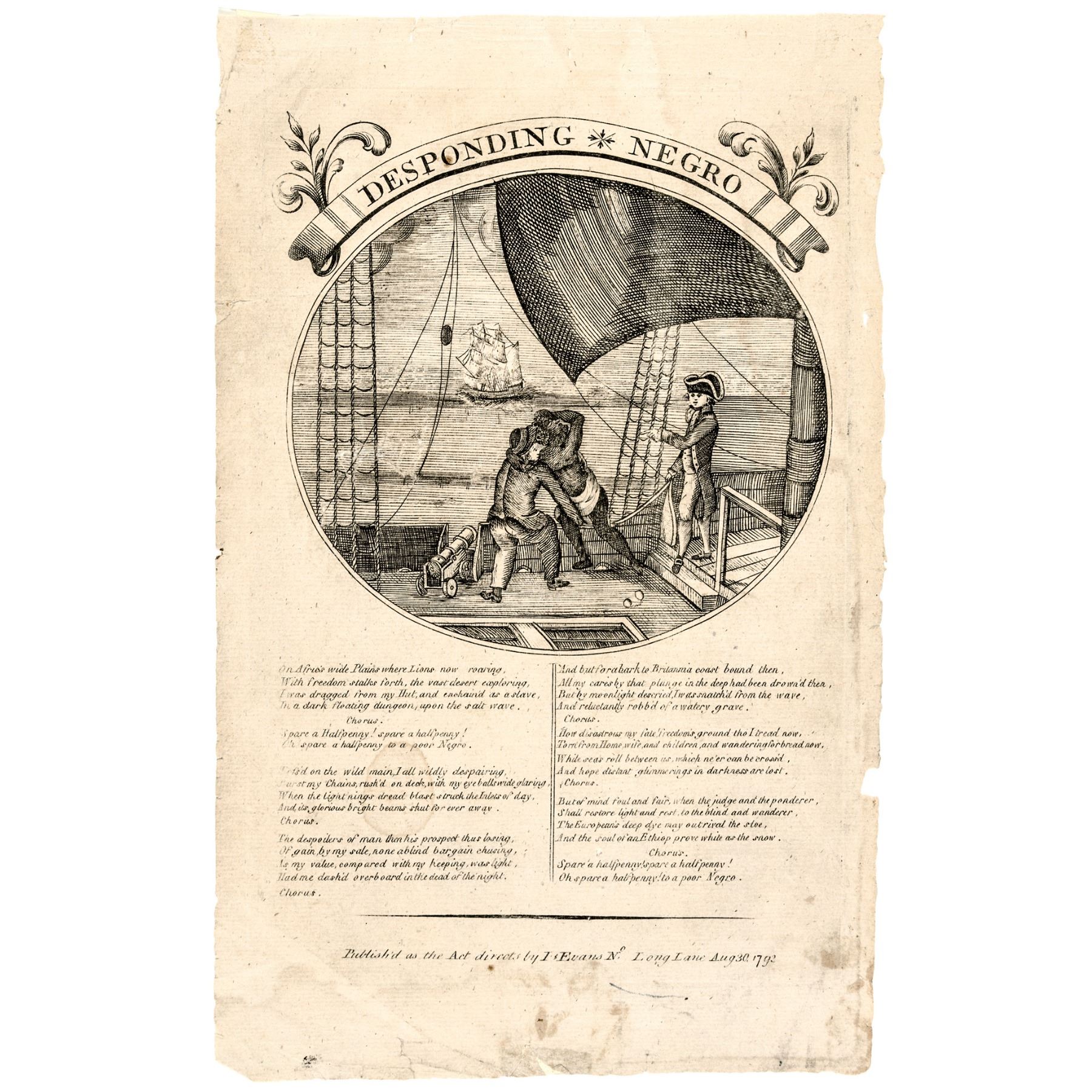August 30, 1792-Dated Federal Period, Black History Graphically Illustrated Engraved Printed Poem titled, “THE DESPONDING NEGRO” by John Collins, Choice Very Fine.