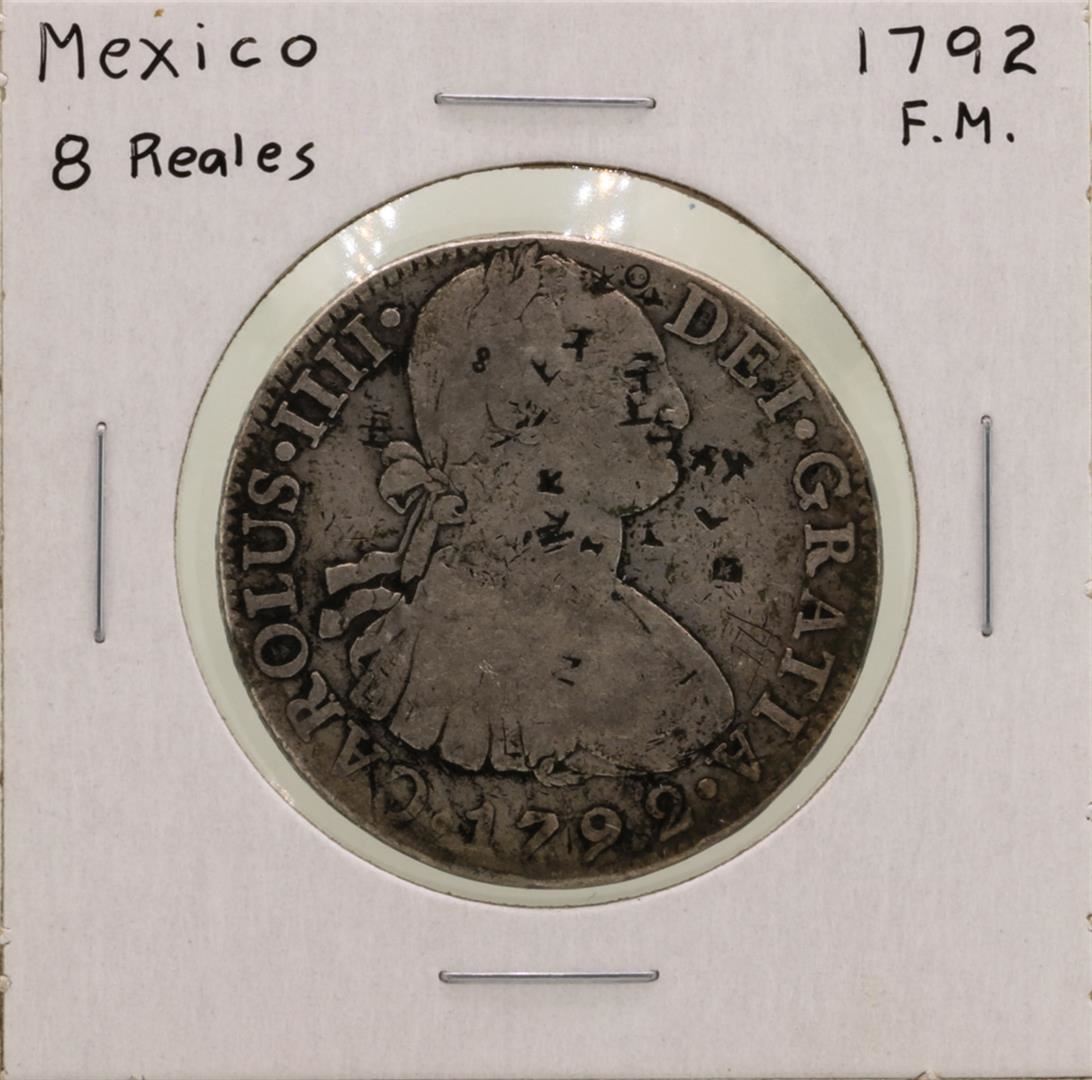 One 1792F.M. Mexico 8 Reales Silver Coin.