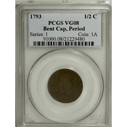 1793 1/2 C Bent Cap, Period VG8 PCGS