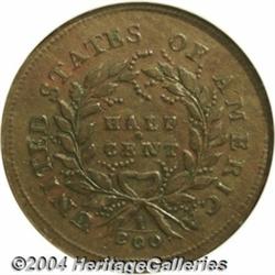<B>1793<1/2 C>--Corroded--ANACS. VF Details, Net VF20.</B></I> B-2, C-2, R.3. A glossy mahogany-brown first year Half Cent with pleasing sharpness on the wreath and portrait. A small planchet flaw (as produced) is found past 9 o'clock on the obverse, but the surfaces are only faintly granular and are more attractive than the ANACS notation suggests. The Bust Left Liberty Cap type was in use only in 1793, and there are simply not enough midgrade survivors to satisfy both specialists and type set collectors.<BR><I>From The Willamette Collection.</B></I> <BR><BR><B>Important notice:</B> Heritage usually auctions material at the rate of 200-250 lots per hour. On some occasions eBay Live bid software or the Internet may not be able to keep up with the pace of the auction. We recommend placing a realistic absentee bid now as insurance to avoid disappointment. Occasionally the auctioneer may eliminate or reject an eBay Live bid, and the auctioneer may also reopen a lot after the close of the eBay live bidding (usually because we missed an audience bid), and may reject your bid even if it shows you as the winning bidder. By bidding via eBay Live, you agree that Heritage may award the lot to another bidder at its sole discretion under the circumstances described above or any other reasonable circumstances. Since eBay bids are not shown to us until we open the lot on the floor, we treat those bids just like floor bids. In most cases the floor responds before the eBay bid is presented to us, due to Internet lag time, so for consistency we have made it a policy that floor bids are always considered first over tie eBay live bids. Also please note that all Heritage lots purchased through eBay Live carry a 20% Buyer's Premium. Please make sure you read the Terms and Conditions before you bid. </span></font></tr></table></td></tr></table>