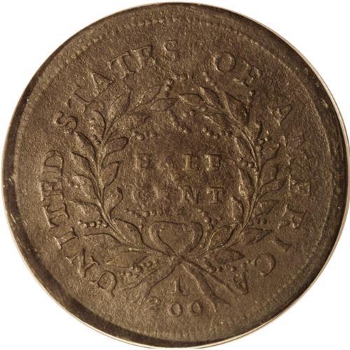 <B>1793<1/2 C>--Corroded--NCS. XF Details.</B></I> C-2, B-2, R.3. Deep steel-brown surfaces with hints of dark green color on both sides. The surfaces are finely porous with a few ancient scratches, commonly seen on these early U.S. coins. Apparently struck on a overweight planchet, although the exact weight cannot be determined due to the holder. EAC 20.