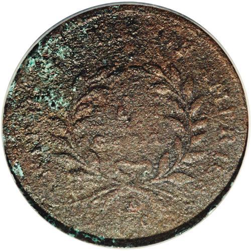<B>1793<1/2 C>--Corroded--NCS. VF Details.</B></I> C-4, B-4, Low R.3. This heavily granular golden-brown example has prominent aqua or ebony verdigris in selected areas on each side. LIBERTY and the date are bold, while the reverse legends are generally faint. A pair of old pinscratches on the lower left obverse field are of little relevance. EAC 5.