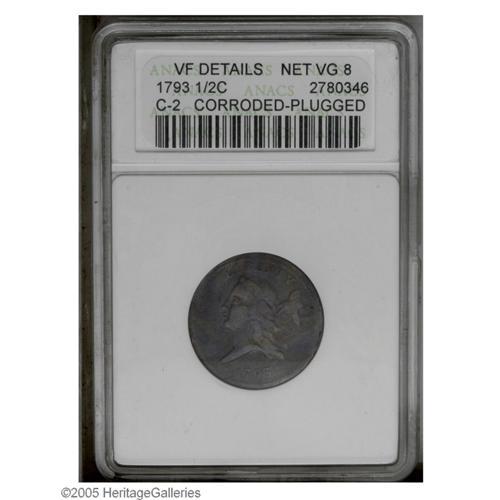 1793 1/2 C --Corroded, Plugged--ANACS. VF Details, Net 1793[1/2 C]--Corroded, Plugged--ANACS. VF Det