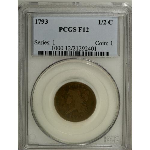 1793 1/2 C Fine 12 PCGS. C-3, B-3, R.3. L in LIBERTY i