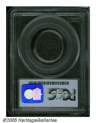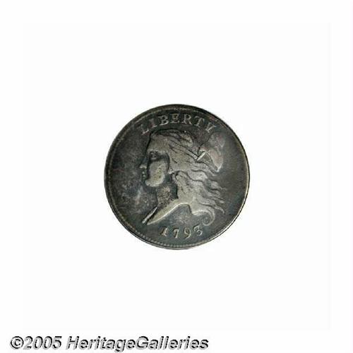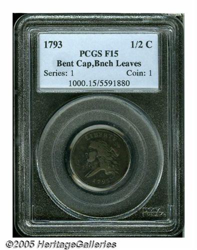 <B>1793<1/2 C> Fine 15 PCGS.</B></I> B-3, C-3, R.3. All legends and major device details are evident on this moderately granular example. The left obverse and the central reverse display a few vertical pinscratches, but these are concealed by walnut-brown toning. First year Half Cents are coveted for their historical importance, and their status as a one-year Bust Left type.