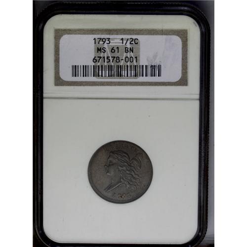 1793 1/2 C Straight Cap MS61 Brown NGC. C-3, B-3, R.3.