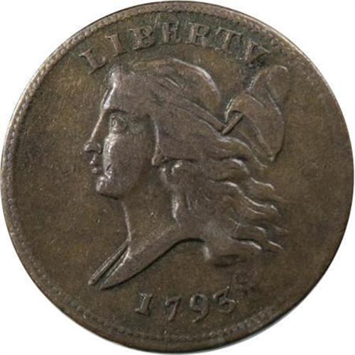<B>1793 1/2 C Straight Cap Bunch Leaves VF35 PCGS.</B></I> B-3, C-3, R.3. The short 7 in the date, the L in LIBERTY partly above the hair, the pole nearer the bust line than the 1 is to the top of the 7, 15 leaves on each branch, and the long, bent fraction bar confirm the variety. <BR> Golden-brown surfaces display hints of violet, and are remarkably clean for a light to moderately circulated coin. The strike is well centered, and the design elements retain ample definition despite light to moderate high point wear. An excellent example of this one-year type. EAC 20.<BR><BR><b>Shipping:</b> Coins & Currency (<a target="_blank" href="http://www.heritageauctions.com/common/shipping.php">view shipping information</a>)