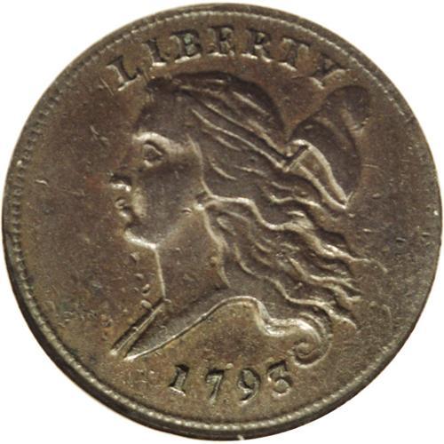 <B>1793<1/2 C> VF30 NGC.</B></I> C-3, B-3, R.3. Medium to dark brown and struck on a decent planchet. There is a minor reverse flaw above TA of STATES to the rim. The surfaces show moderate nicks and scratches from circulation but lack the porosity so often encountered. All the devices and legends are sharply struck and clear to the unaided eye. Housed in an older style NGC holder. EAC 15. <BR><BR><B>Important notice:</B> Heritage usually auctions material at the rate of 200-250 lots per hour. On some occasions eBay Live bid software or the Internet may not be able to keep up with the pace of the auction. We recommend placing a realistic absentee bid now as insurance to avoid disappointment. Occasionally the auctioneer may eliminate or reject an eBay Live bid, and the auctioneer may also reopen a lot after the close of the eBay live bidding (usually because we missed an audience bid), and may reject your bid even if it shows you as the winning bidder. By bidding via eBay Live, you agree that Heritage may award the lot to another bidder at its sole discretion under the circumstances described above or any other reasonable circumstances. Since eBay bids are not shown to us until we open the lot on the floor, we treat those bids just like floor bids. In most cases the floor responds before the eBay bid is presented to us, due to Internet lag time, so for consistency we have made it a policy that floor bids are always considered first over tie eBay live bids. Also please note that all Heritage lots purchased through eBay Live carry a 20% Buyer's Premium. Please make sure you read the Terms and Conditions before you bid. This lot is being auctioned in conjunction with a live floor auction by Heritage Galleries & Auctioneers. All final auction and invoice information will be supplied by Heritage Galleries & Auctioneers, and all other information should be considered preliminary. Lot:201 <BR><BR><B>Winning Notification and Billing:</B> After the FINAL session in this auction is complete, Heritage will send e-mail and snail mail invoices. This process normally takes several days. All final auction and invoice information will be supplied by Heritage Galleries & Auctioneers, and all other information should be considered preliminary. <BR><BR>This auction will be conducted on a live auction floor and over the Internet through eBay Live. If you choose to place an absentee bid, please take a moment to <font color='#0000ff'><u><a href='http://pages.ebay.com/liveauctions/help/before/laabsentee.html'>learn how eBay Live absentee bidding works</a></u></font><font color='#000000'>