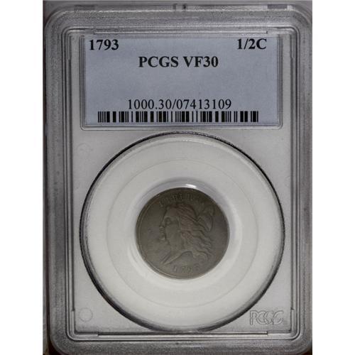 1793 1/2 C VF30 PCGS. B-3, C-3, R.3. The first half ce