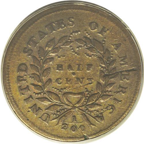 <B>1793<1/2 C> VF30 PCGS.</B></I> C-2, B-2, R.3. This variety is characterized by the Y in LIBERTY distant from the cap, a spur on the top left of the 9 in the date, and the 2 in the fraction that nearly touches the left ribbon end. Pleasing light to medium tan patination imbued with subtle golden-green undertones bathes each side. The design elements retain nice detail throughout, and are well centered on the planchet. A few minor contact marks are not at all bothersome. The planchet shows evidence of being poorly prepared for striking, as both obverse and reverse display some as-made planchet cracks, none of which significantly impact the devices. The reverse is rotated a few degrees clockwise. All in all, an extremely pleasing early half cent. EAC 10.