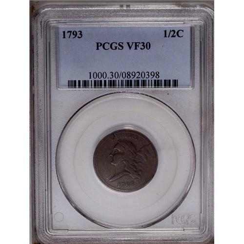 1793 1/2 C VF30 PCGS. C-2, B-2, R.3. This variety is c 1793
