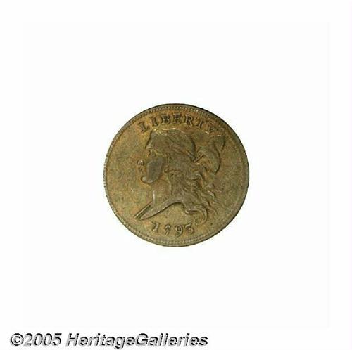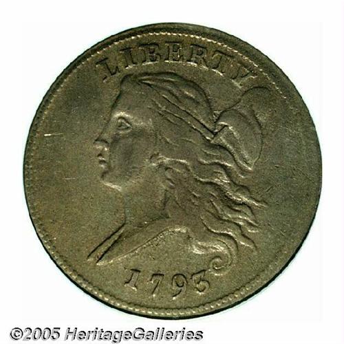 <B>1793<1/2 C> VF35 PCGS.</B></I> B-4, C-4, Low R.3. A lovely medium brown example, void of carbon or granularity. Boldly struck save for AMERICA. A small dig is on the reverse center, the reverse rim has small ticks at 6 and 7 o'clock, and a few very wispy obverse marks are on the neck and right border. These imperfections are not consequential for the grade. Overall, the eye appeal is impressive.<BR><I>From The Melrose Bay Collection.</B></I>