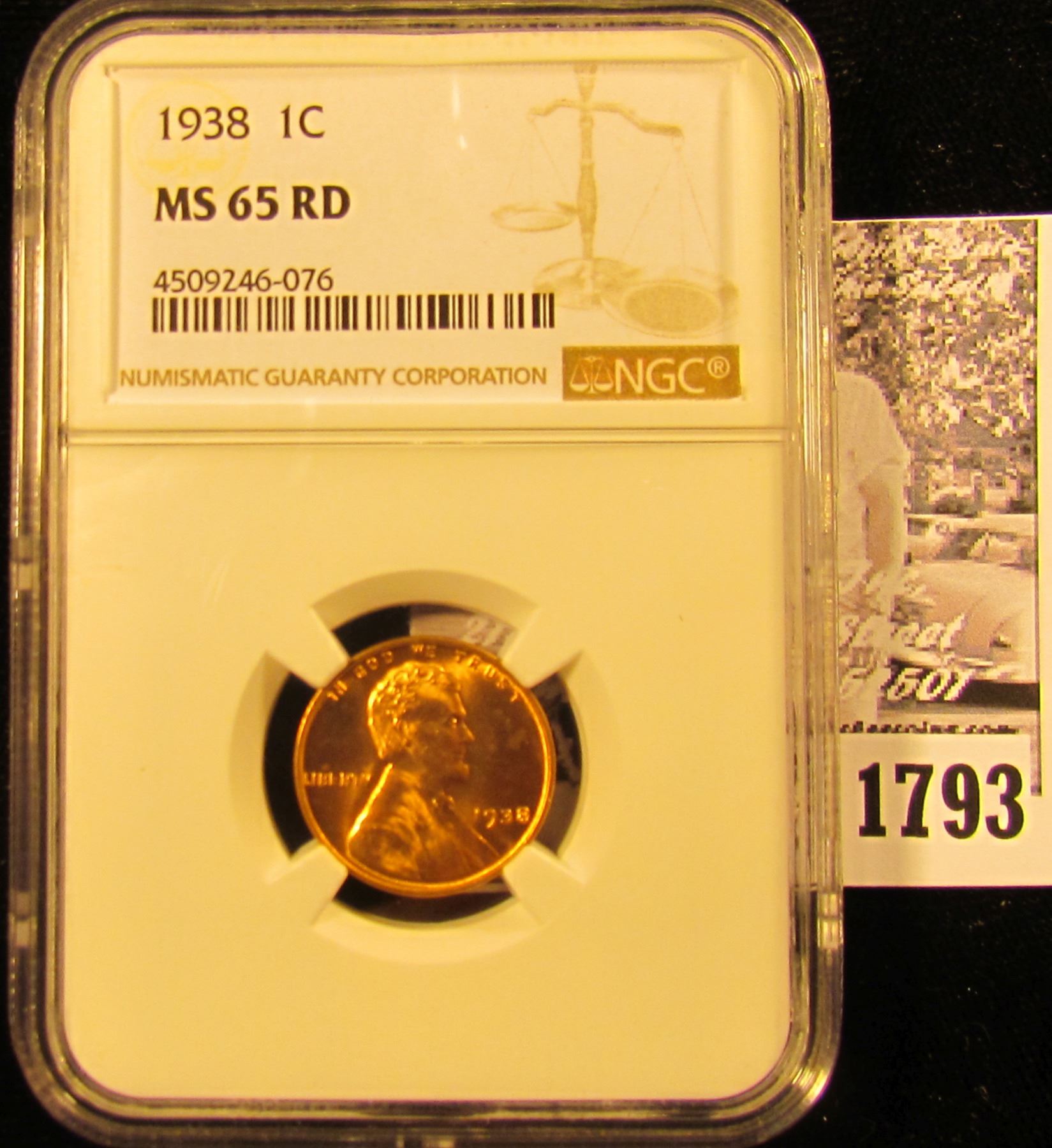 1793 . 1938 P Lincoln Cent NGC slabbed MS65 RD.