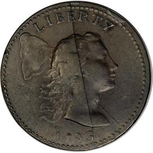 <B>1793 1C Liberty Cap. XF45 PCGS. S-14, B-17, Low R.5. </B></I> <B>Bland VF35; tied for CC-5. Noyes VF35; tied for CC-4. Photo #25008. Our EAC Grade VF35.<BR><BR>Equivalents.</B></I> Crosby-Levick 11J; Frossard 12; Proskey 15; Doughty 15; Crosby 13-L; McGirk 3-C; EAC 17; <I>Encyclopedia</B></I> 1647; PCGS #1359.<BR><B><BR>Variety.</B></I> The Bisecting Crack. Leaf triplet is positioned below OF. The obverse appears on S-14. The reverse appears on S-13, S-14, S-16, and NC-6. Lettered Edge, one leaf.<BR><B><BR>Surfaces. </B></I>A well struck example with smooth dark chocolate color and some lighter tan on both sides. Each side has a few minuscule surface marks that are consistent with the grade. Although imperfectly centered, the obverse and reverse have full and complete border beads. The obverse has a small rim bruise over Y, and the reverse has a few insignificant edge nicks.<BR><B><BR>Die State III.</B></I> sharp strike of this example particularly emphasizes the prominent obverse die crack. There is no evidence of the clash marks of Breen's State II, but there is evidence of the reverse die bulge of Breen's State III.<BR><BR><B>Appearances.</B></I> The obverse and reverse are illustrated in Noyes (2006).<BR><BR><B>Census.</B></I> This example is well within the traditional Condition Census of the top six examples, ranking either fourth or fifth depending on which source is consulted. The finest known grades just XF45 and the ANS holds an XF40, making the present specimen even more desirable. Most known examples are in lower grades and easily identified, as the die crack is visible in nearly any grade.<BR><BR><B>Commentary.</B></I> With a surviving population of about 70 pieces, the Bisecting Crack is the second most common variety of the six 1793 Liberty Caps, although it is substantially rarer than Sheldon-13. The rarity of this variety has remained essentially unchanged since 1949, when Sheldon gave it an R.5 rating. Perhaps the stable rarity rating is due to the recognizable nature of the obverse.<BR><BR>Dr. Charles E. McGirk compiled and published a study in 20 parts in <I>The Numismatist</B></I> from April 1913 to December 1914. At the time, other published references included Crosby on 1793s, Frossard and Hays on 1794s, Gilbert and Elder on 1796s, Frossard's <I>Monograph</B></I>, Proskey's study, and Doughty's study for all years. Breen commented in his <I>Large Cent Encyclopedia</B></I> that "McGirk numbers occasionally appeared on cents in auctions and old collections, but for various reasons (among others, numerous errors, lack of a meaningful sequence, listing die cracks as new varieties, and lack of usable illustrations) the system was forgotten. Later monographs ignored the McGirk numbers. McGirk's work, if better done, might have replaced the Doughty reference."<BR><BR><B> </B></I>A completed coinage die was not ready for use until it was hardened. The February 1826 issue of <I>The Franklin Journal</B></I> described the hardening process<I>,</B></I> quoted in Breen's <I>Large Cent Encyclopedia:</B></I> "The general method of hardening this metal is to heat it red hot, and then plunge it into cold water, and sometimes into mercury, in order to reduce its temperature as quickly as possible." Craig Sholley notes that the hardening process was the "moment of truth" once a die was engraved. Many dies cracked or shattered during the process. Others only hardened near the edges, and cracked or broke upon first use. It was the results of this procedure, according to Sholley, that have often been described as "poor die steel." There is little doubt that the hardening process resulted in the Bisecting Crack variety.<BR><BR><B>Provenance.</B></I> <I>A.H. Baldwin & Sons, Ltd. (London, 5/1954); Norweb Collection (Bowers and Merena, 11/1988), lot 2697, $26,500; Anthony Terranova; Auction '89 (David Akers), lot 1004, $30,800; Samuel Spatzer (Esquire Coin Co.); Douglas F. Bird and Lou Rasera (Southland Coins and Currency); Daniel W. Holmes, Jr</B></I>.<BR><BR><B>Personality.</B></I> A native of Cleveland, Ohio, <B>Daniel W. Holmes, Jr.</B></I> is CEO of Morrison Products, Inc., manufacturers of electric fans. He began collecting in 1948, when he was 10 years old. He has been a member of EAC since 1973 and currently serves as the organization's president. Holmes has formed the most complete variety collection ever assembled, lacking just two pieces to complete his entire collection from 1793 to 1857 by die variety.<BR><BR><B>Sheldon-15.</B></I> Single bead dots the I; lowest curl is heavy. Single leaf is positioned below OF. The obverse appears on S-15 and S-16. The reverse appears on S-12 and S-15. Lettered Edge, one leaf.<BR><BR>Sheldon-15 is one of just three Sheldon numbers missing from the Husak Collection. The others are the 1795 Reeded Edge (S-79), and the 1795 Jefferson Head (S-80). Sheldon-15 was produced by a combination of obverse and reverse dies used for other 1793 Liberty Cap cents. Current census details show exactly 12 examples of the S-15 known today, with the finest known piece in the ANS collection, grading Fine 12.<BR><BR><b>Shipping:</b> Coins & Currency (<a target="_blank" href="http://www.heritageauctions.com/common/shipping.php">view shipping information</a>)