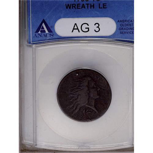 1793 1C Wreath Cent--Lettered Edge--AG3 ANACS. S-11c, 1793[1C] Wreath Cent--Lettered Edge--AG3 ANACS