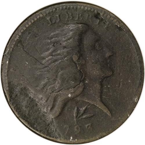 <B>1793 1C Wreath Cent--Lettered Edge--Laminations--ANACS. Fine 12 Details.</B></I> S-11c, B-16c, Low R.3. This darkly patinated example has traces of lighter tan color on the high points of the devices. A large planchet lamination defect is noted at the lower left part of the obverse, from the border to the lower hair curls. A smaller lamination is seen at the right side of the reverse. A few other later imperfections can also be seen. EAC 4.<BR><BR><b>Shipping:</b> Coin/Currency (<a target="_blank" href="http://www.heritageauctions.com/common/shipping.php">view shipping information</a>)