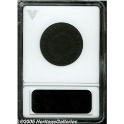 <B>1793 1C Wreath Cent--Vine and Bars--Corroded, Lamination--ANACS. VG Details, Net Good 6.</B></I> S-6, R.3. LIBERTY and UNITED STATES OF AMERICA are bold on this dark brown example. The date, fraction, and denomination are legible but faint. Uniformly micro-granular, a thin lamination ventures from 2 o'clock across Liberty's forehead.