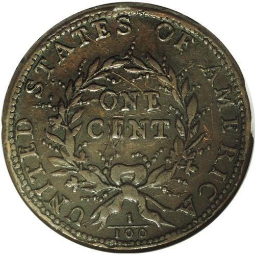 1793 1C Wreath Cent--Vine and Bars, Scratched--ANACS.