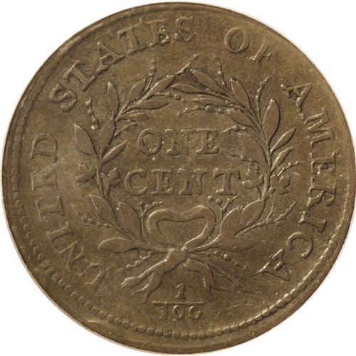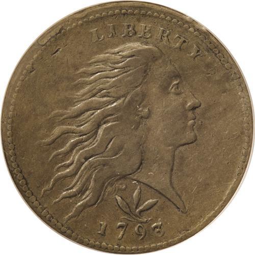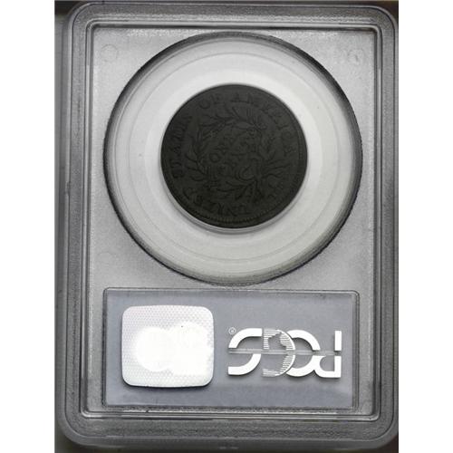 <B>1793<1C> Wreath Cent--Vine and Bars-- XF40 PCGS.</B></I> S-9, B-12, R.2. Die State II. This is the most common of the 1793 cents. The obverse twig joining the three leaves is nearly horizontal and a bit curved, running from the tops of the 7 and 9 to above the corner of the 3. The bow is large and rounded, with an opening shaped like a kidney bean. In this die state a faint crack runs from the rim above I down through CA and to the stem and ribbon. This glossy olive-brown example shows few abrasions beyond a couple of ticks in the upper left obverse field behind Liberty's hair. There is a minor rim bruises at 11 o'clock on the obverse, and some light crumbling at the reverse rim in the lower left quadrant. The light porosity noted on each side is a bit more prominent on the reverse. Despite a few technical issues, this example is a pleasing specimen that would make an affordable choice for a high grade type or date set. EAC 25.<BR><I>From The Chief Paduke Collection.</B></I>