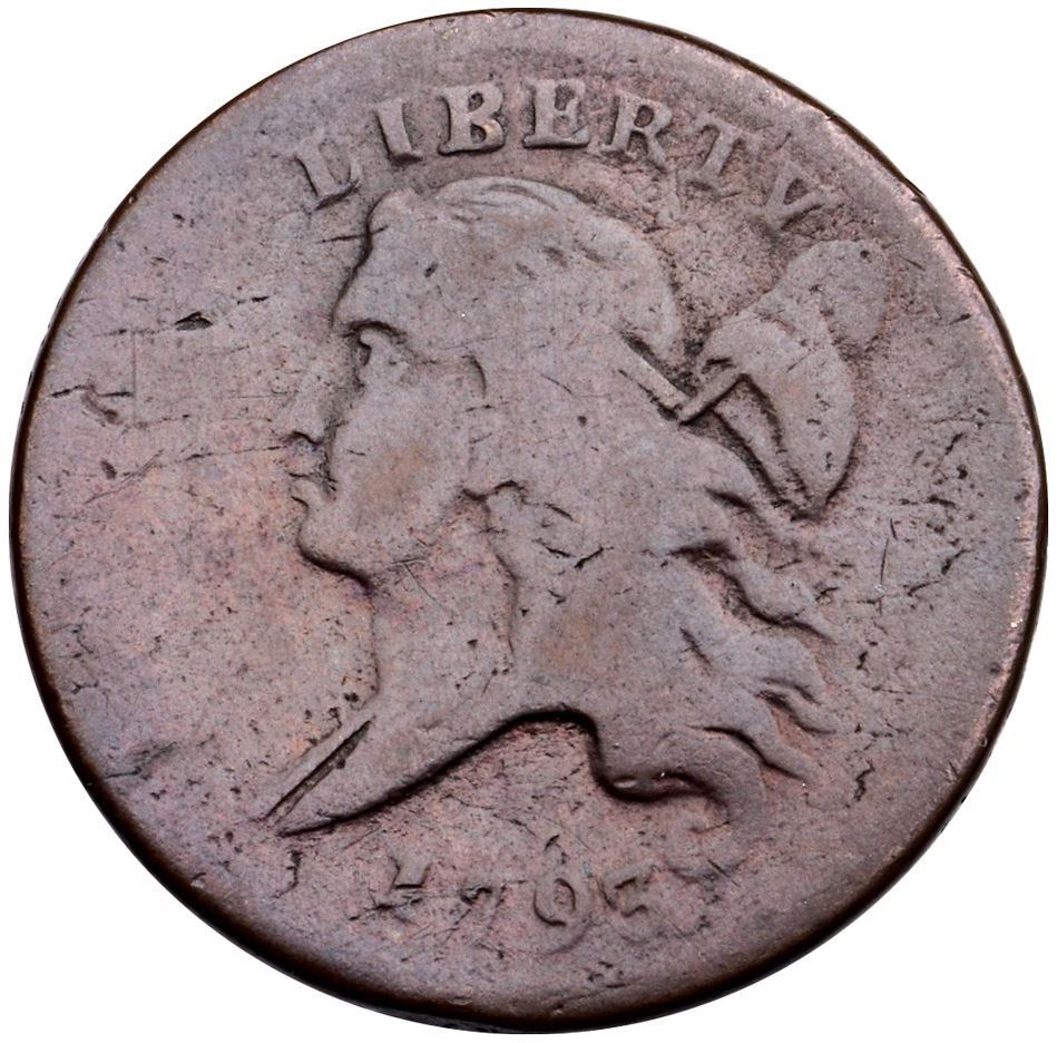 1793 C-3 R-3 Head Left G6VG8+ but recolored and now attractive ruddy chocolate brown. There are few trivial marks in the fields. Nice smooth surfaces. Full date, LIBERTY, and peripheral reverse legends, while the central reverse is weak as is usual. EDS, Manley State 1.0.Certificate Number: Pedigree: Ex; Craig Hamling - Jerry Sajbel 2/4/2006 - Steve Ellsworth 10/19/2006 - Bob Kebler Collection