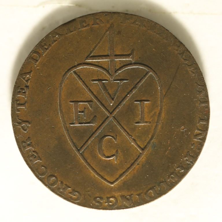 PROVINCIAL TOKENS PRIVATELY MINTED TOKEN COINAGE STRUCK AND USED DURING THE LATTER PART OF THE 19TH CENTURY IN ENGLAND. SIMILAR TO OUR CIVIL WAR AND HARD TIMES TOKENS. GROCER & TEA DEALER PAYABLE IN FIELDINGS,