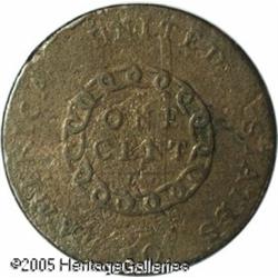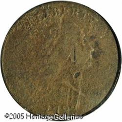 <B>1793 Chain 1C AMERICA, Periods XF Details, Corroded, NCS.</B></I> S-4, High R.3. A crisply detailed but porous piece that has a planchet flaw or toned mark on Liberty's neck. An example of the scarce Periods variety, named for the periods that follow LIBERTY and the date. Lot:5102