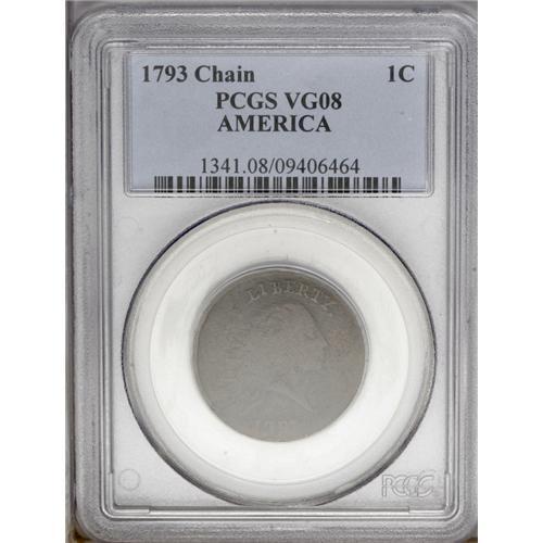 1793 Chain 1C AMERICA VG8 PCGS. S-4, R.3. Although not 1793 Chain[1C] AMERICA, Periods VG8 PCGS.