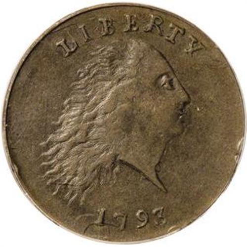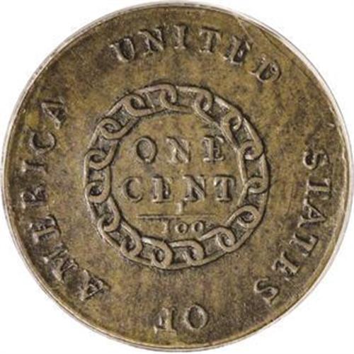<B>1793 Chain<1C> AMERICA XF40 PCGS.</B></I> S-3, B-4, Low R.3. Breen Die State III. A splendidly detailed example of this fleeting early type, struck only in March of 1793. The Chain cent represents the first design struck by the U.S. Mint, and quality survivors are cherished for their historical significance. The present piece has bold legends, and the portrait shows only moderate wear on the eye and on the hair close to Liberty's ear. The inner hair detail is delightfully brought up. The wood-grain medium brown surfaces are highly pleasing. A few tiny rim nicks are noted, on the obverse at 4, 5, 6, and 8 o'clock, and on the reverse at 6 o'clock. The only other marks that merit even casual mention are tiny ticks beneath Liberty's eye and above the E in ONE, and a couple of faint, short, thin, and toned over scratches near the TE in STATES. Minor dark gray build-up within the legends and chains only attests to the originality. Clash marks from the chain outline Liberty's lower profile. Breen (2000) suggests, "The ghostly chain clash marks at Ms. Liberty's face and neck may have inspired the 'Liberty in chains' epithet." This, in turn, references a comment by Dr. Sheldon from his groundbreaking <I>Early American Cents,</B></I> (1949), "The 1793 Chain Cent was a particular target for invective. This was the 'Liberty in chains' cent." Contemporary observers were not kind to the designs. An often-quoted editorial from the March 18 issue of Philadelphia's <I>The Mail, or Claypoole's Daily Advertiser</B></I> opined, "The chain on the reverse is but a bad omen for Liberty, and Liberty herself appears to be in a fright." However wags of the day may have referred to the Chain cent, attitudes eventually changed. 1793 cents were among the first series collected by die variety. In 1869, Crosby and Levick published <I>The United States Cents of 1793,</B></I> and this served as the standard reference for numismatists until Crosby updated it in 1897. Encapsulated within a green label holder. EAC 20.<BR><I>From The Tide Collection.</B></I>