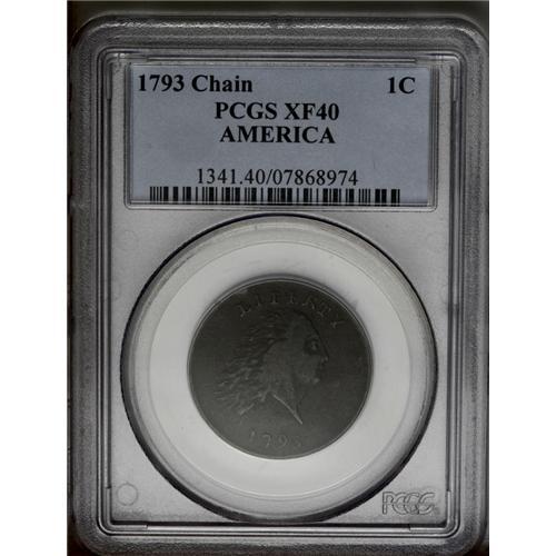 1793 Chain 1C AMERICA XF40 PCGS. S-3, Low R.3. Close d