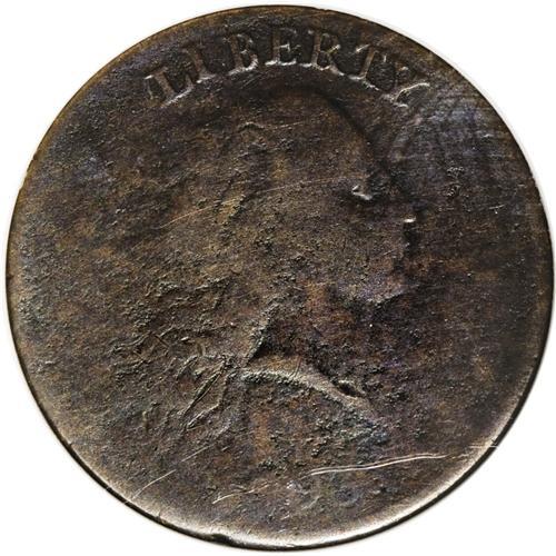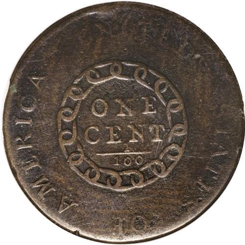 <B>1793 Chain 1C Periods--Corroded--ANACS. VG8 Details.</B></I> S-4, B-5, High R.3. Light corrosion is limited mainly to the obverse, and the olive-brown, glossy planchet is smooth and pleasing. Both the periods after LIBERTY and the date are faintly discernible, as is the date, and LIBERTY and the reverse details, as typical for the issue, are bold. A tiny rim bump is noted above the A in STATES. A pleasing example with no major distractions. EAC 5.<BR><BR><b>Shipping:</b> Coins & Currency (<a target="_blank" href="http://www.heritageauctions.com/common/shipping.php">view shipping information</a>)