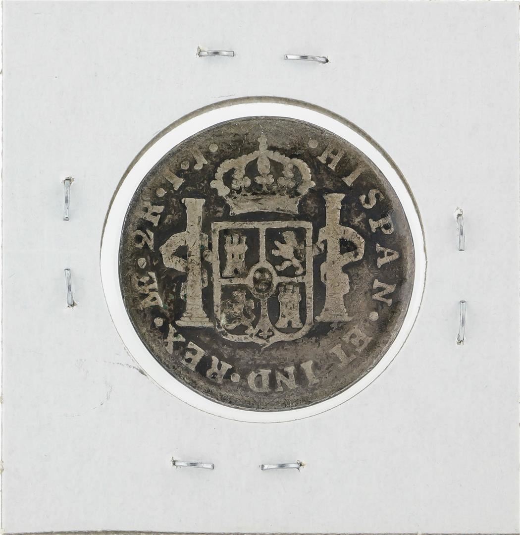One 1793 Peru Carlos IV 2 Reales Silver Coin.