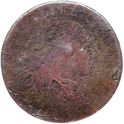 1793 S-1 R4 Chain AMERI. NCS graded Good Details, Improperly Cleaned. Chocolate and steel with lighter steel brown toning on the highpoints from a very delicate cleaning. The surfaces are decent but a strong glass reveals traces of extremely fine roughness in the fields and protected areas. The obverse is a bit weaker than the reverse. The date is gone but LIBERTY is readable and the portrait is visible. The chain and legends on the reverse are complete and easily readable although not strong. EDS, before any die cracks on the reverse. Our grade is AG3+. The attribution is noted on the NCS label.