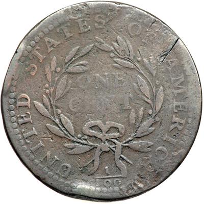 1793 S-13 R4-. Good-4. Liberty Cap. Several points sharper but the rims have suffered several hits including a couple rim dents and pinches that flattened many of the border beads. The notable marks are a small rim dent just left of the fraction, a longer one at D-ST, and a pinch left of the first A in AMERICA. The planchet is smooth, completely free of any hint of corrosion or verdigris. Attractive glossy chocolate and steel. The date is easily readable, although the bottom is starting to fade into the rim below, and the legends are complete. Not perfect, of course, but finding a problem-free Liberty Cap 1793 cent of any die variety is a very challenging task today.