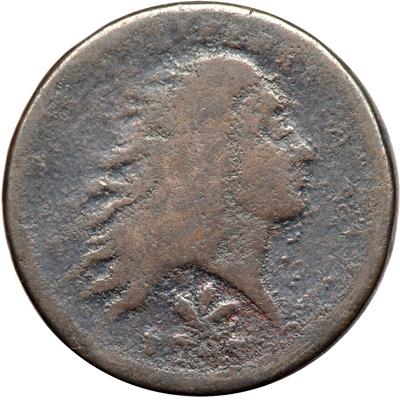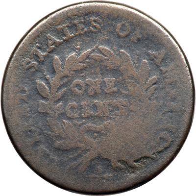 1793 S-9 R2. Good-5. Wreath Cent with Vine & Bars Edge. Mostly glossy chocolate and steel with darker olive brown in protected areas. The highpoints are smooth while minor roughness shows in the fields and protected areas. The date is full and remains readable in spite of some distortion from the minor roughness, especially on the 93. The legends are mostly readable as well but portions are fading into the rim. No verdigris or contact marks. Latest die state, Breen state IX, with severe die failure on the wreath at ICA.