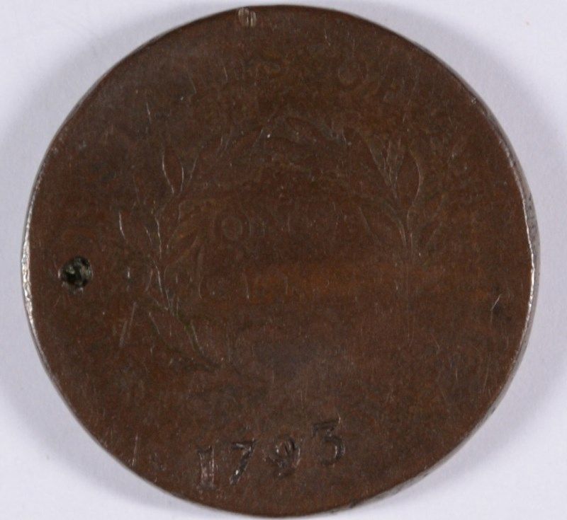 1793 WREATH LARGE CENT GOOD DETAILS PLUGGED, 1793 STAMPED ON REVERSE