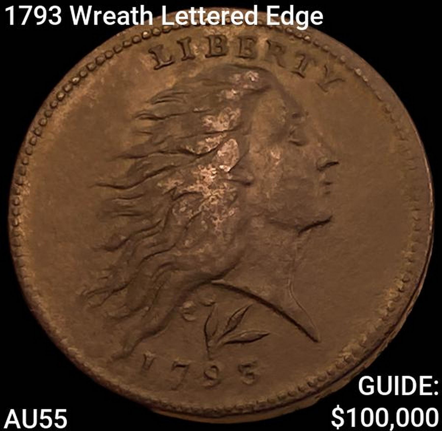 1793 Wreath Lettered Edge Flowing Hair Large Cent HIGH GRADE