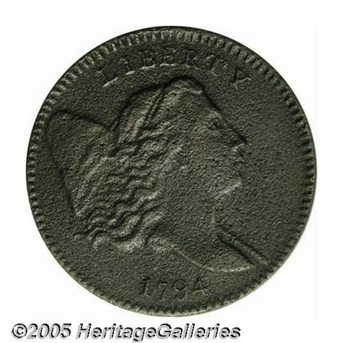 <B>1794<1/2 C> AU Details, Corroded, NCS.</B></I> B-2b, C-2a, High R.2. Small Edge Letters. This bold gray-brown piece is not unattractive to the naked eye. The porosity is consistent, but never heavy enough to affect the designs or legends. There are no relevant marks. Cohen-2 is an example of the 'Heavy Wreath' subtype, significantly different from the Cent style wreath used later in the year.