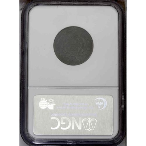 <B>1794<1/2 C> Small Edge Letters. C-3a, B-5b, Low R.5. Die State 2. Good 4 NGC. Good 5 EAC.</B></I> Normal date, 79 close; Vertical leaf pair right of T. This is quite a scarce variety, considered R.6 by Cohen and Breen, and Low R.5 currently, with an estimated population of about 60 coins. The fields are dark brown with lighter olive-brown devices, an attractive two-tone example. Several light scratches cross Liberty's bust and neck, but these have been there for a long time and are completely blended in with the rest of the coin. They are also light enough that they did not prevent NGC from certifying this rare variety. Despite the low overall condition, this is an excellent opportunity for the variety collector to cross another one off his or her want list.<BR><I>Ex: Shepard (6/13/1976).</B></I> Envelope Included.