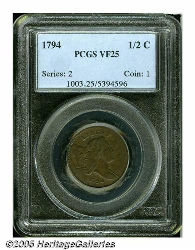 1794 1/2 C VF25 PCGS. B-6b, C-4a, R.3. The Small