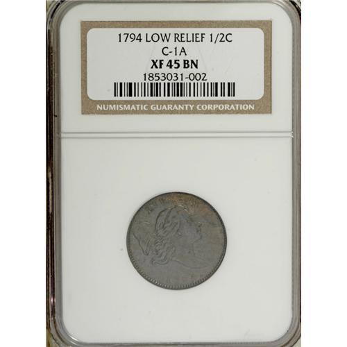 1794 1/2 C XF45 NGC. C-1a, B-1a, R.3. The portrait is
