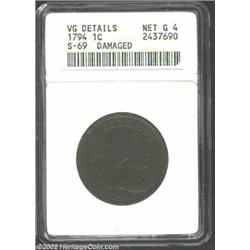 1794 1C Head of 1794--Damaged--ANACS. VG Details, Net Good 4. S-69, R.3. Unevenly worn with much hea