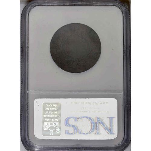 <B>1794<1C> Head of 1794. S-24, B-8, R.1--Corroded--NCS. XF Details. Fine 15 EAC.</B></I> Although it is not so evident on this example, Liberty's cheek is rounded and in higher relief than surrounding design elements, prompting Dr. William Sheldon's father to call this the Apple Cheek variety. Perhaps that name was a bit whimsical, for it is hard to imagine Miss Liberty with an entire apple in her mouth. A late die state example, as are many, with reverse bulges obliterating much of ONE CENT. Olive-brown surfaces with deep reddish corrosion, mostly on the reverse. A few rim bruises and tiny digs are noticed on the obverse. Envelope Included.