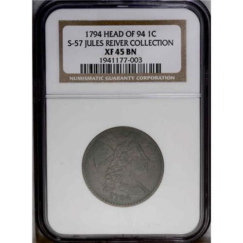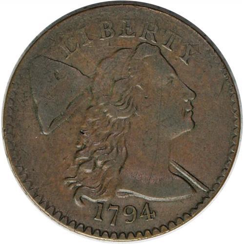 1794 1C Head of 1794. S-57, B-55, R.1. XF45 NGC. VF30 1794[1C] Head of 1794. S-57, B-55, R.1. XF45 N